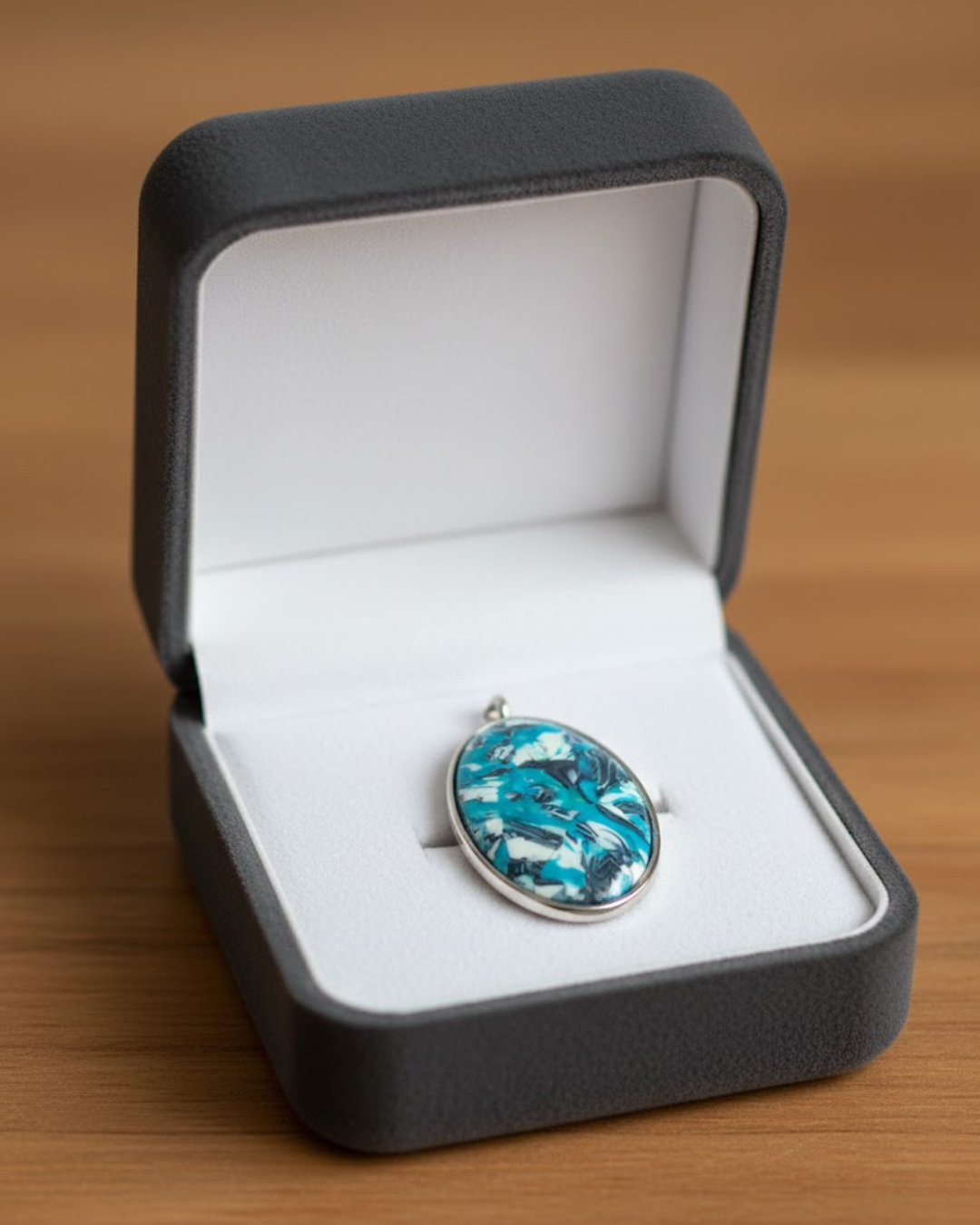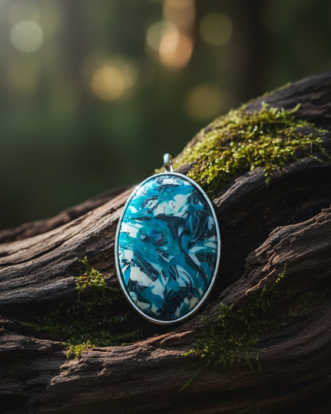 Oto propozycja opisu dla Twojego wyjątkowego wisiora. Skupiłem się na jego unikatowości i "głębi", jaką nadaje połączenie glinki i żywicy.