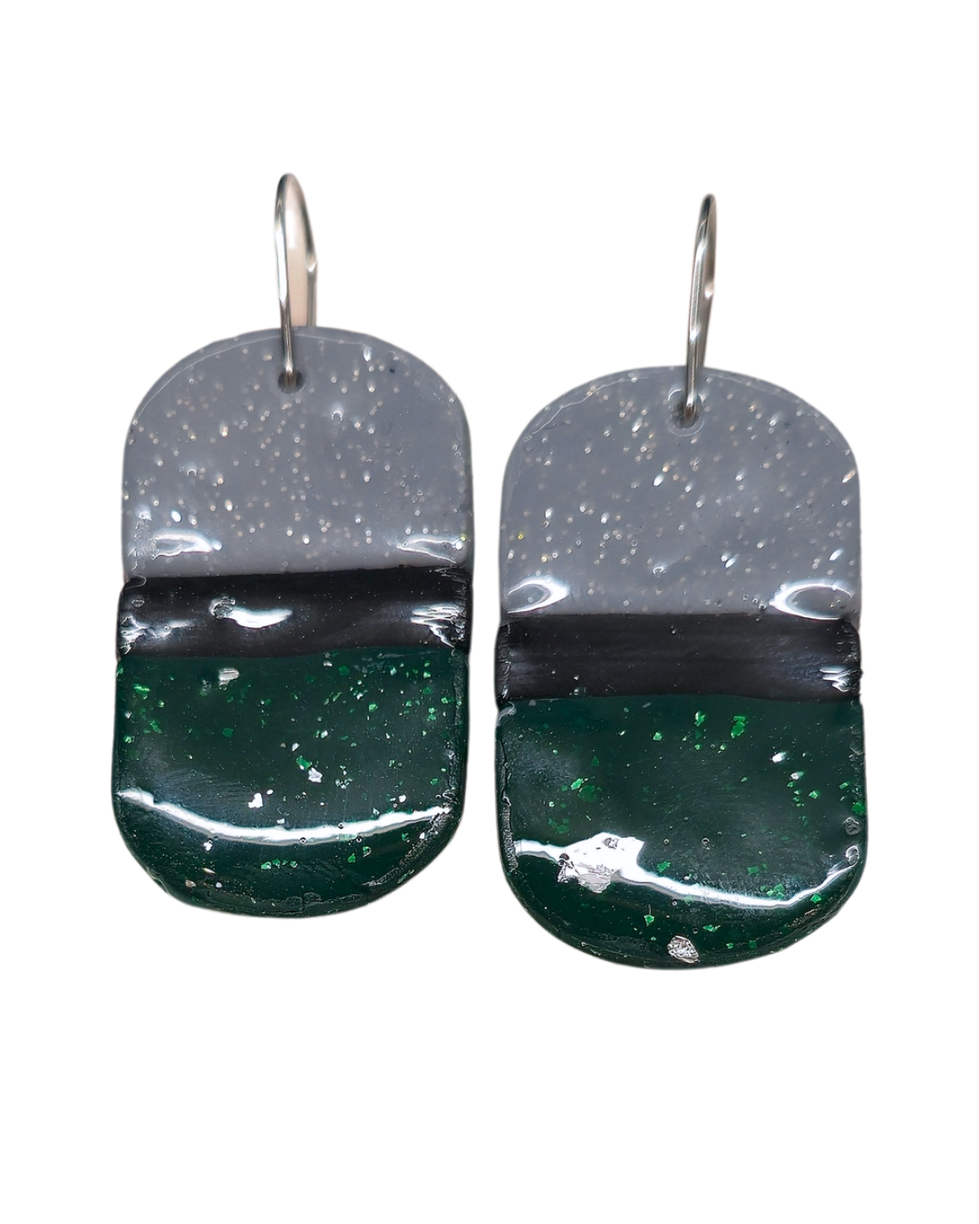 Te kolczyki to prawdziwy kameleon stylu. Dzięki swojej kolorystyce (srebro, czerń, butelkowa zieleń) pasują do niemal każdej okazji: