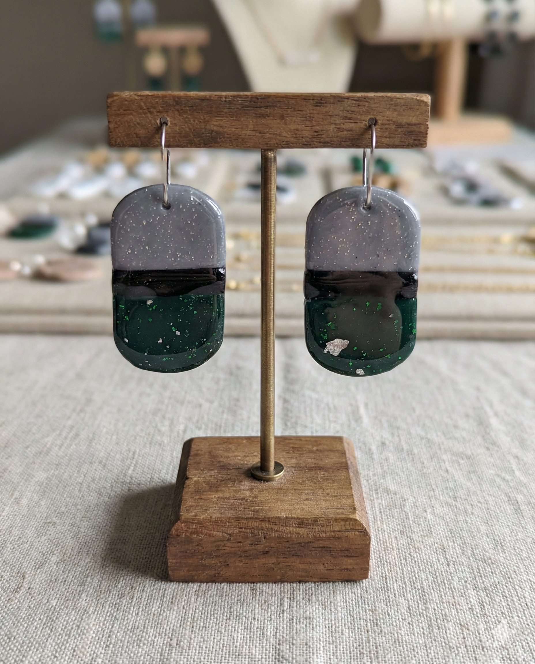 Efekt "Glass-Like": Najwyższej jakości żywica jubilerska została wypolerowana na wysoki połysk, co daje efekt lustrzanej tafli. Kolczyki pięknie odbijają światło, rozświetlając Twoją twarz przy każdym ruchu.