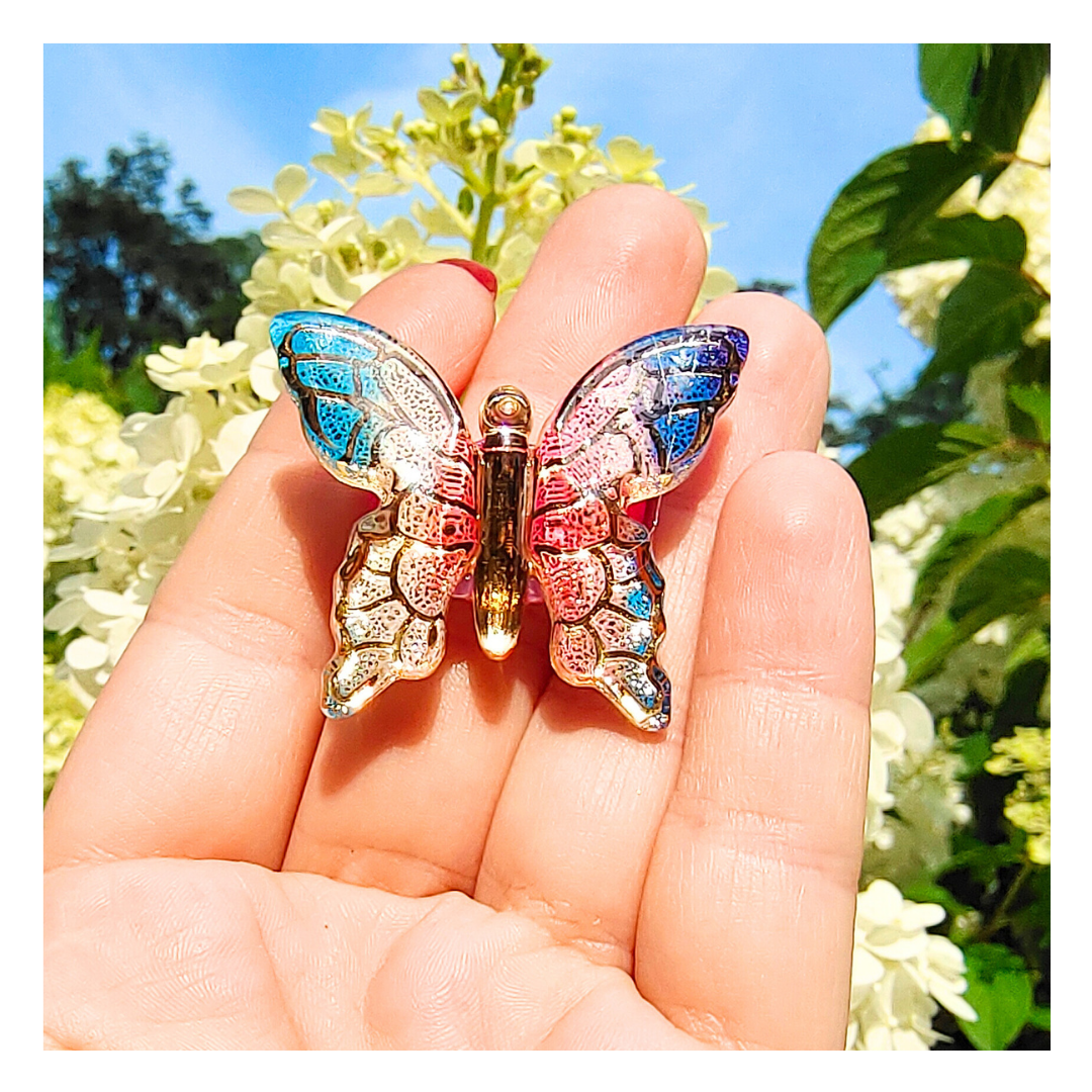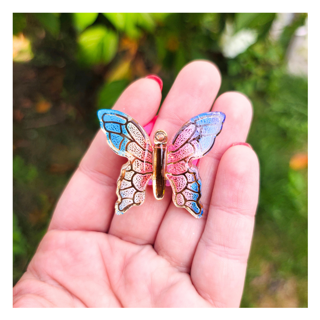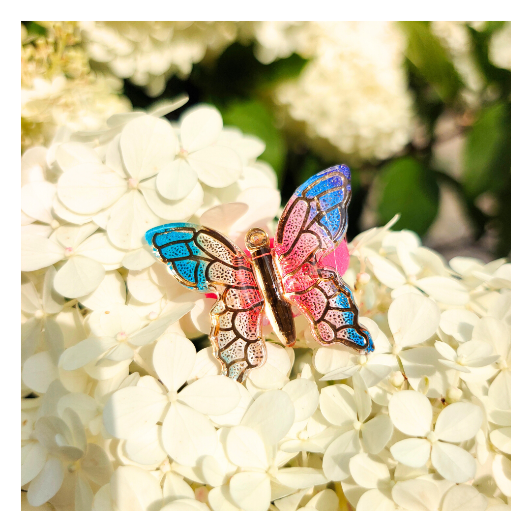 Odkryj magię lata z naszą wyjątkową gumką do włosów "Tęczowy Motyl"! Ta ręcznie wykonana gumka zachwyca pięknem ozdoby w kształcie motyla, wykonanej z żywicy epoksydowej, mieniącej się odcieniami barw. Delikatne, złote żyłki dodają jej elegancji i subtelnego blasku.