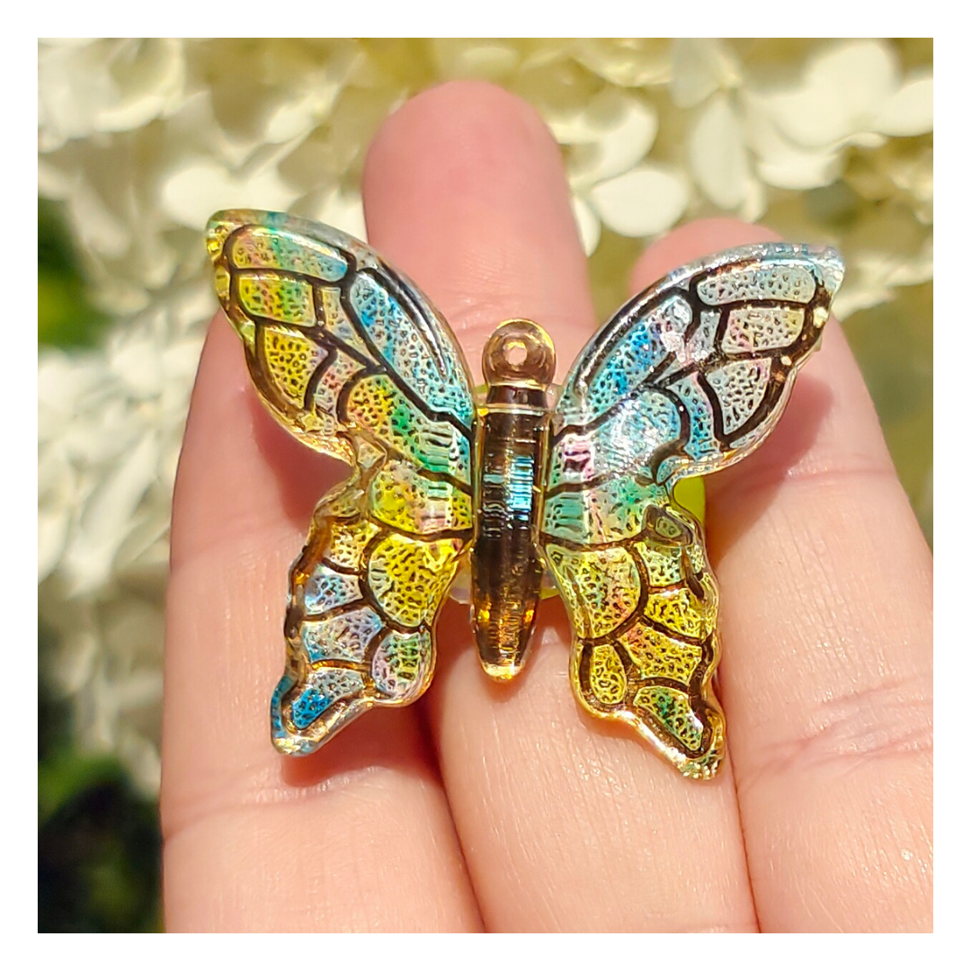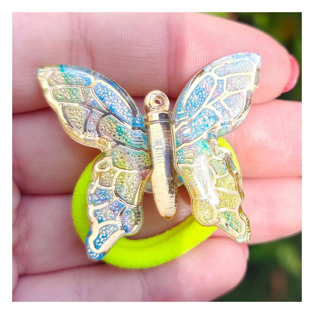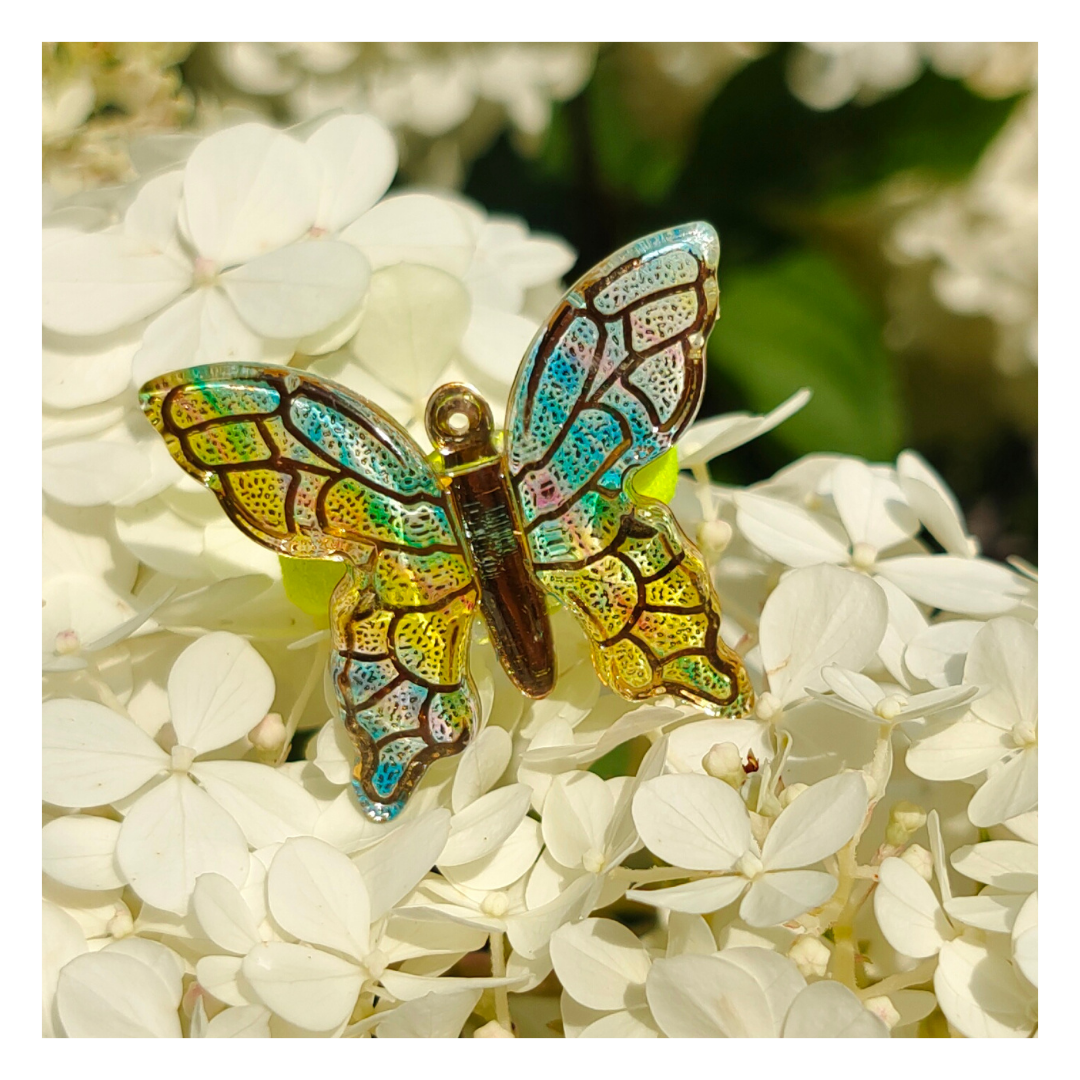 Odkryj magię lata z naszą wyjątkową gumką do włosów "Tęczowy Motyl"! Ta ręcznie wykonana gumka zachwyca pięknem ozdoby w kształcie motyla, wykonanej z żywicy epoksydowej, mieniącej się odcieniami barw. Delikatne złote żyłki dodają jej elegancji i subtelnego blasku.