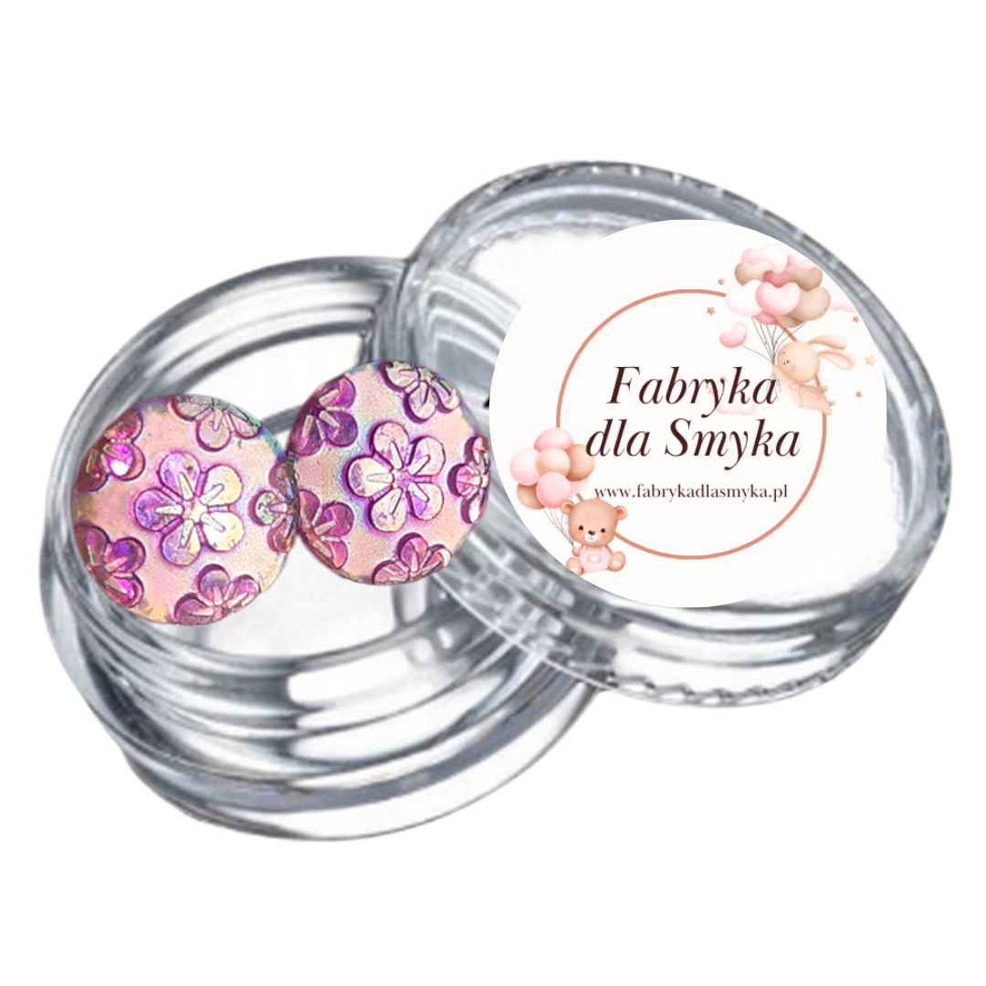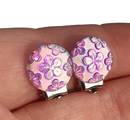 Klipsy kaboszony z kwiatuszkami fioletowe