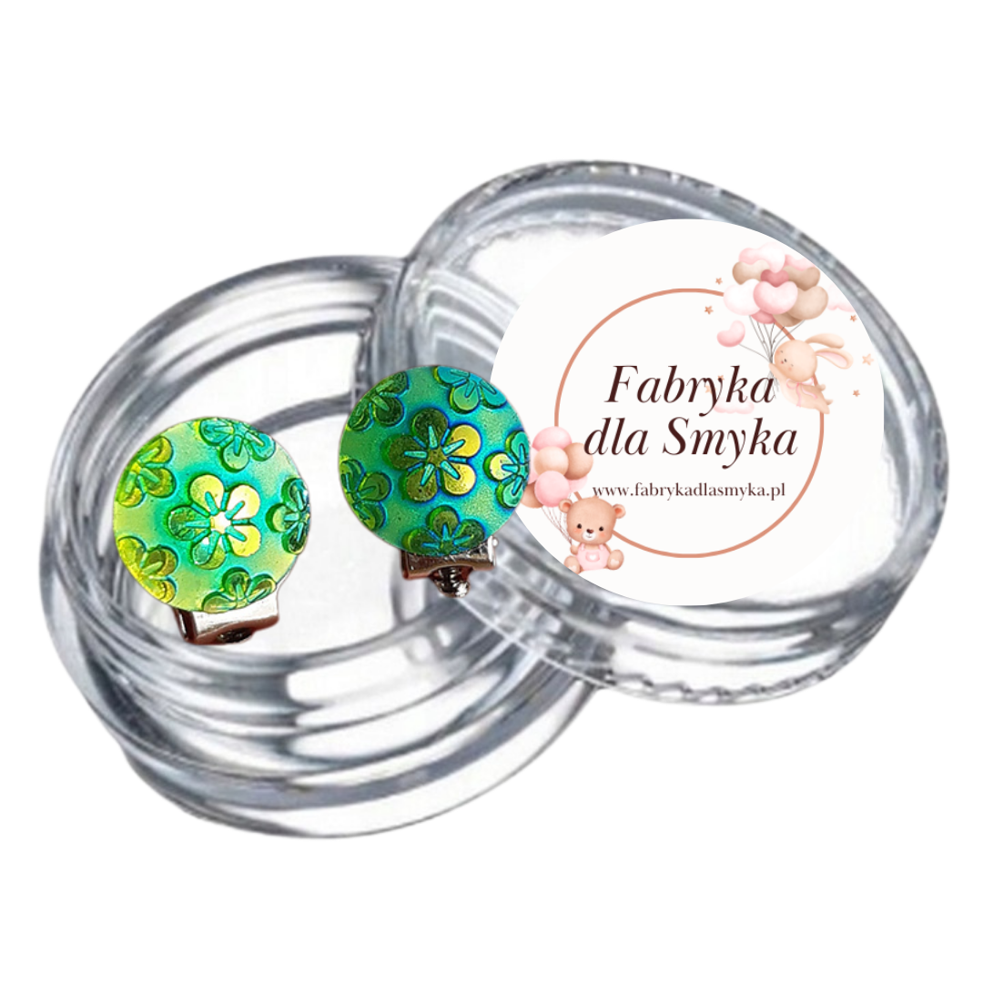 Klipsy kaboszony z kwiatuszkami zielone