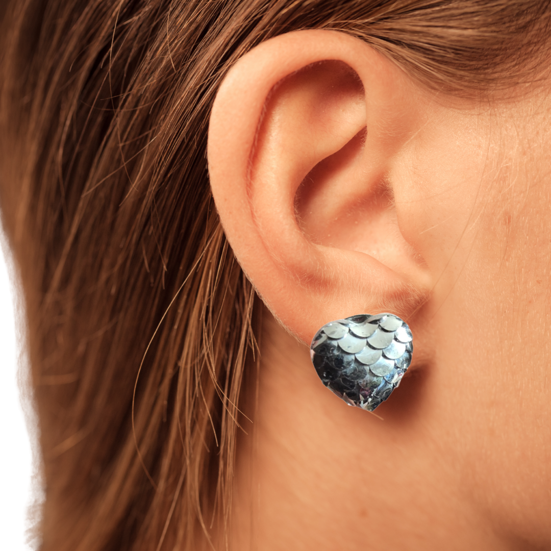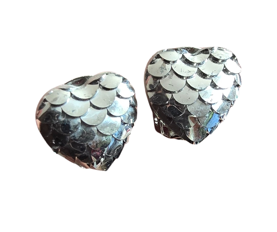 Klipsy rybia łuska serduszka hand made srebrne