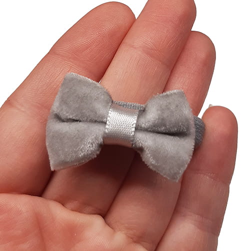 Kokardka umieszczona na gumce o szerokości 1 cm.