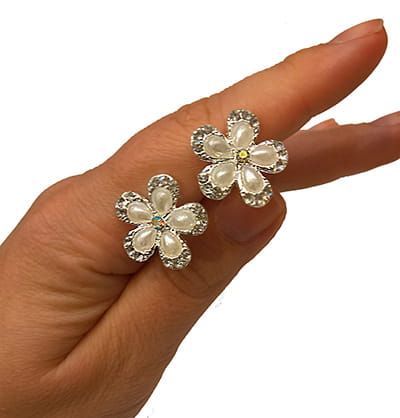 Wykonana z drucika galwanicznego w kolorze srebrnym, kwiatuszków z perełek i cyrkonii.