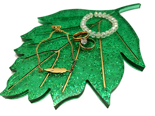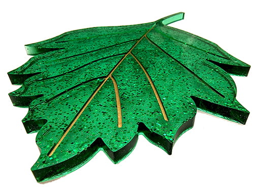 Ręcznie wykonana taca dekoracyjna w kształcie liścia.