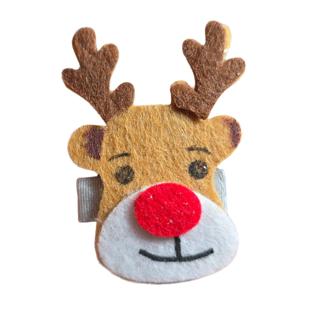Poczuj magię świąt dzięki naszym unikalnym, ręcznie robionym ozdobom. Oferujemy uroczą spinkę do włosów z motywem głowy renifera, wykonaną z miękkiego filcu. To idealny dodatek, który wprowadzi świąteczny nastrój i wywoła uśmiech na twarzy każdej dziewczynki.