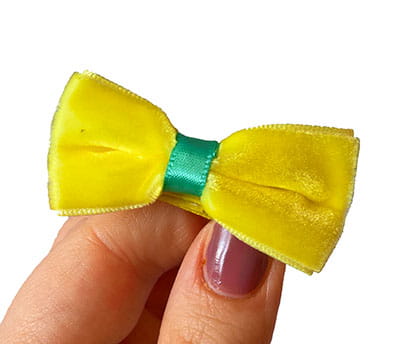 satynową wstążką przez co spineczka nie posiada żadnych ostrych wykończeń i nie ciągnie włosków.