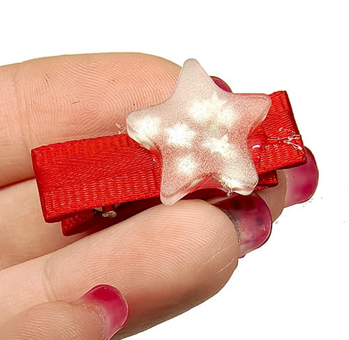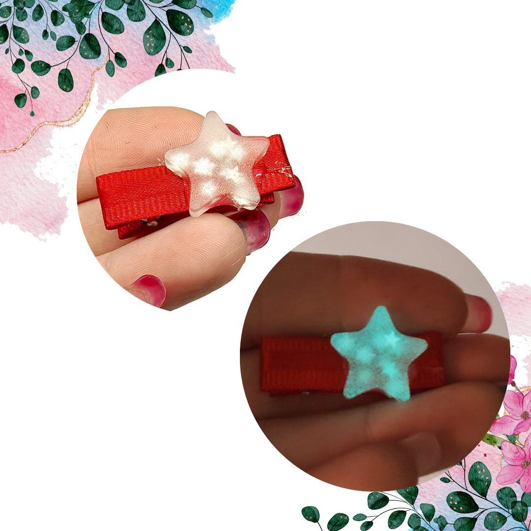 Twoja własna "Pierwsza Gwiazdka", która świeci w ciemności! ⭐ Te spinki to coś więcej niż ozdoba – to odrobina magii, którą Twoja córeczka może mieć zawsze przy sobie. Złocista gwiazdka na czerwonej kokardce wygląda elegancko za dnia, ale prawdziwe show zaczyna się po zgaszeniu światła. Wtedy gwiazdki zaczynają świecić delikatnym, magicznym blaskiem!