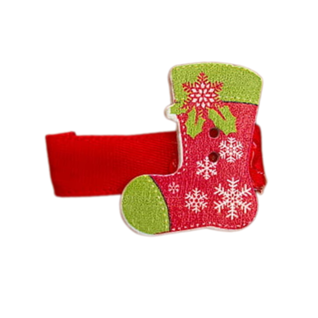Świąteczna spineczka z drewnianą skarpetą hand made