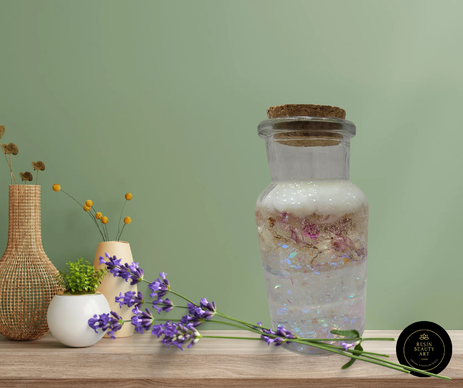 Design: Ręcznie wykonana, osadzona w eleganckim szklanym naczyniu.