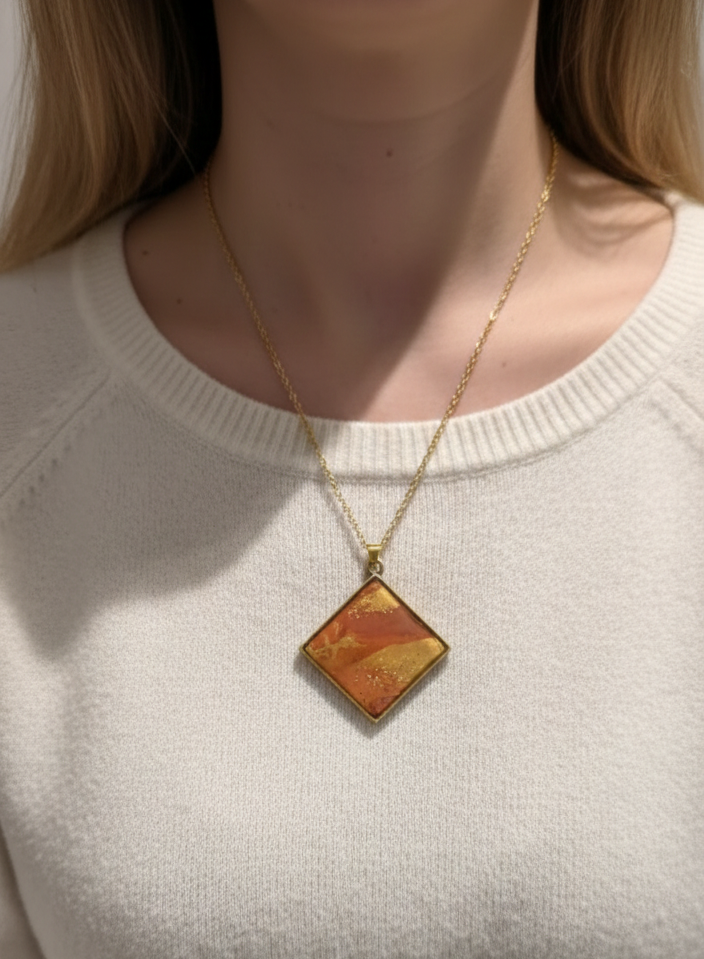Odkryj biżuterię, która łączy w sobie pasję tworzenia z nowoczesnym designem. Ten wyjątkowy wisior w kształcie rombu to małe dzieło sztuki, stworzone dla kobiet ceniących oryginalność i subtelną elegancję.