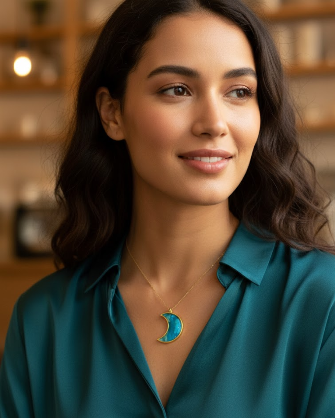 Elegancja spotyka naturę Przedstawiamy wyjątkowy wisior, który łączy luksusowy blask złota z surowym pięknem morskich minerałów. Serce wisiora zostało ręcznie uformowane z glinki polimerowej, tworząc unikalną kompozycję barw – od głębokiego turkusu, przez lazur, aż po piaszczystą biel.